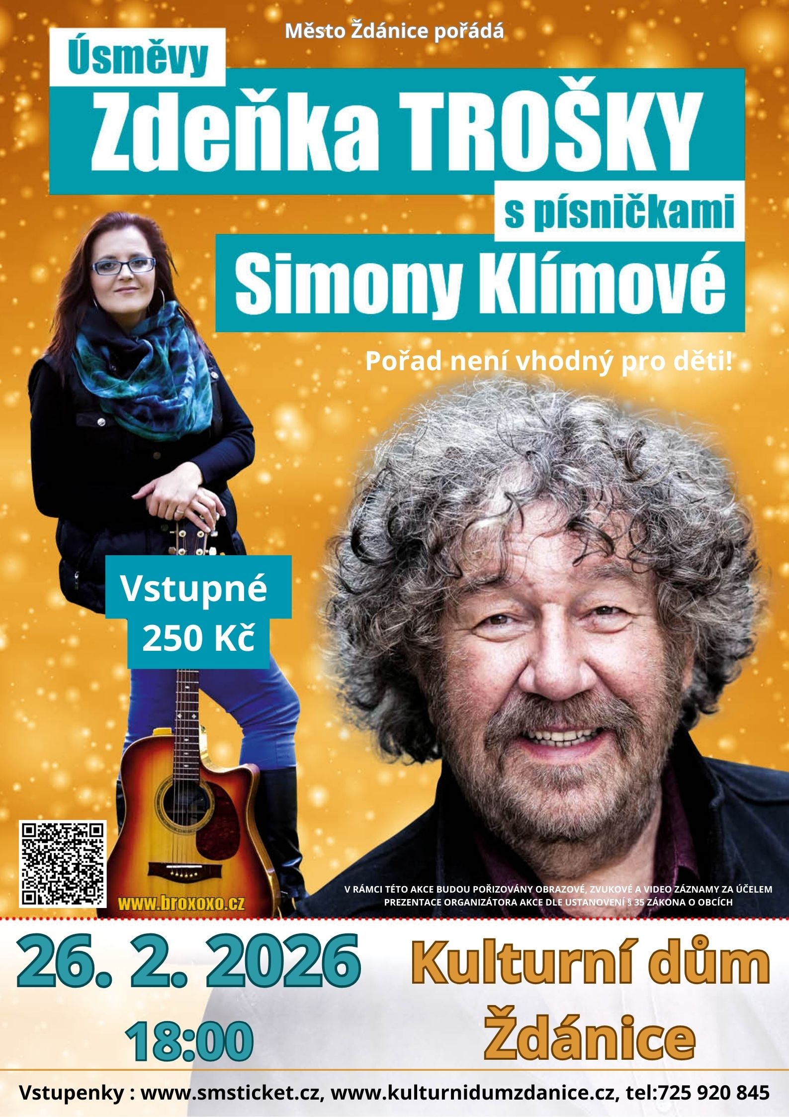 V tomto představení oba aktéři spolu odkryjí zákoutí režisérova života, kde jídlo, smích, vtip, humor a nadsázka je mottem celého večera. „Nejsem žádný "troškař“, prohlašuje o sobě Zdeněk TROŠKA,…